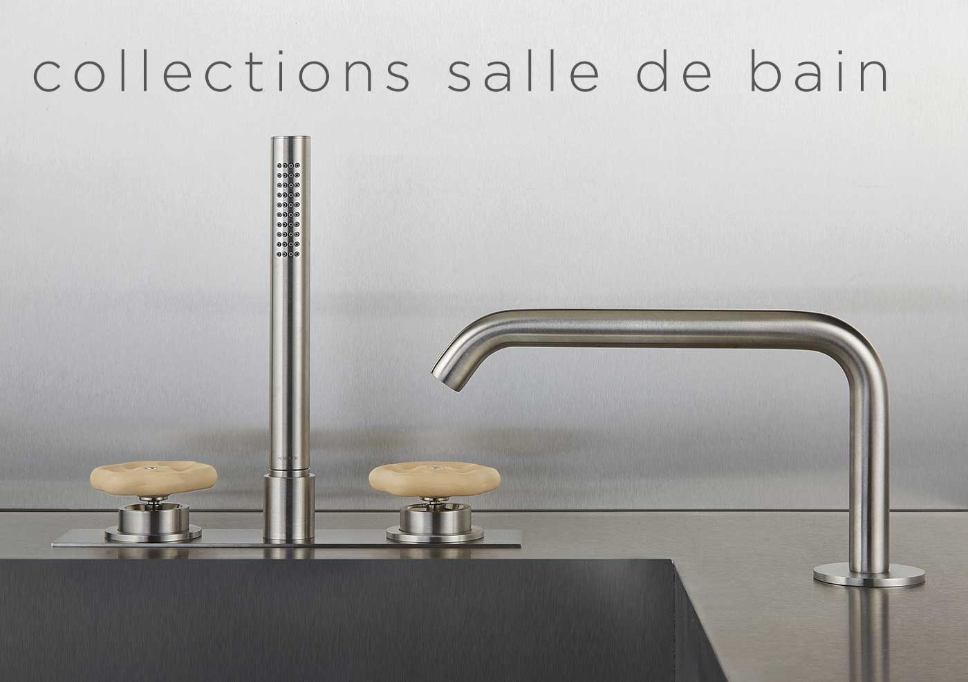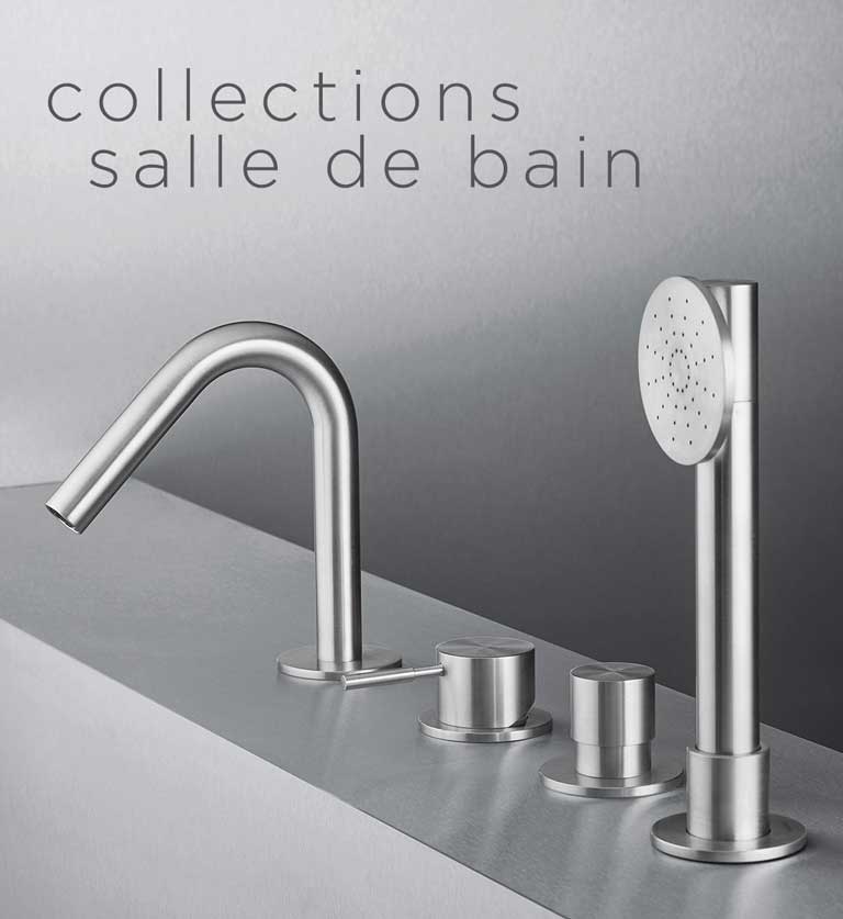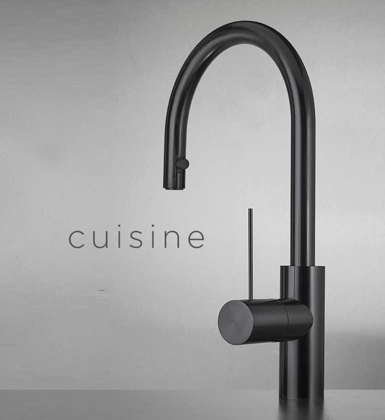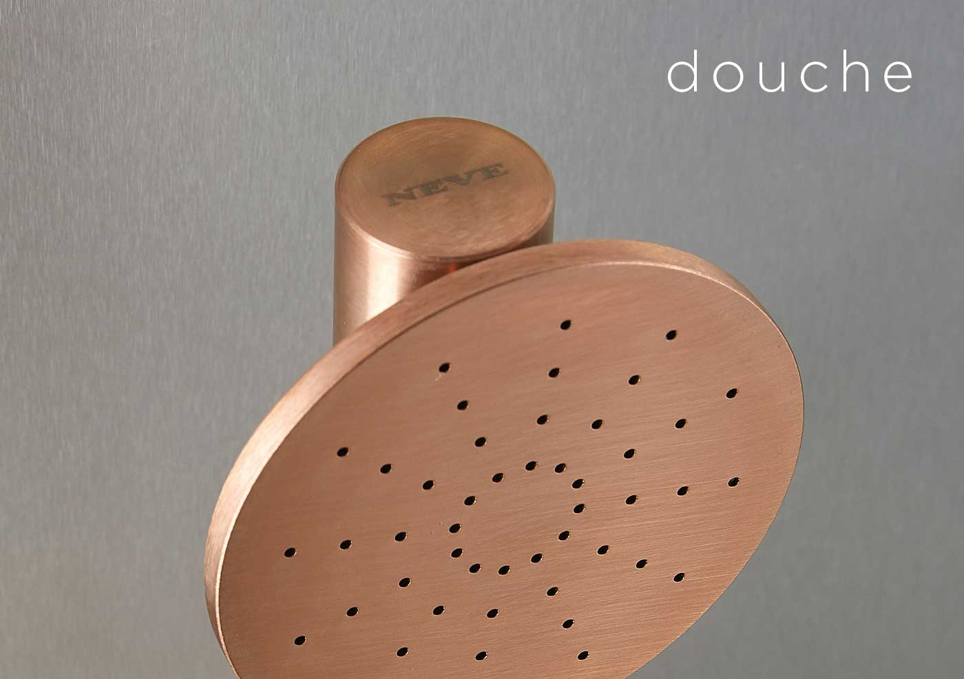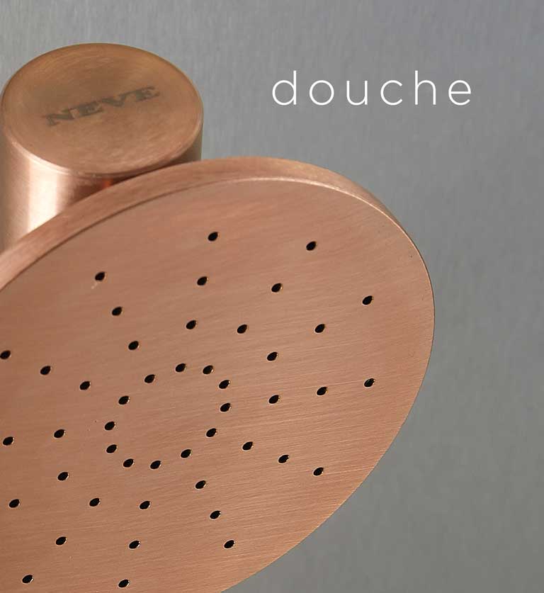 Le design élégant et minimal de Neve Rubinetterie se marie parfaitement avec ce matériau et peut être embelli de finitions PVD.